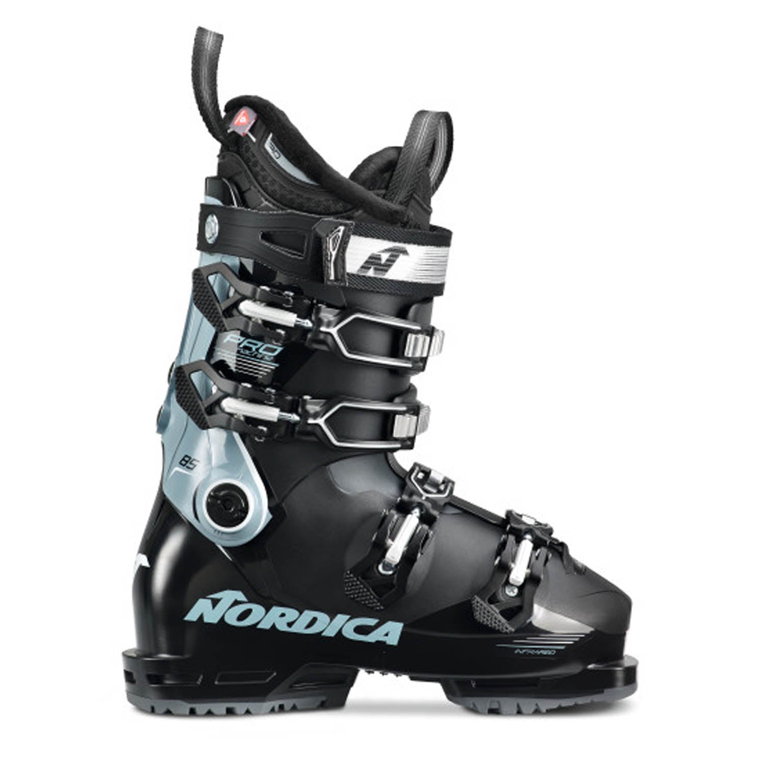 The Promachine 85 W is a soft-flexing ski boot designed specifically for women who value both comfort and performance. Its lightweight construction, low-volume 98mm last, and responsive feel make it ideal for skiing on groomed trails, bumps, and challenging terrain. The Primaloft liner provides exceptional warmth and comfort, while the women's-specific lower articulated rear cuff offers ample calf space.
