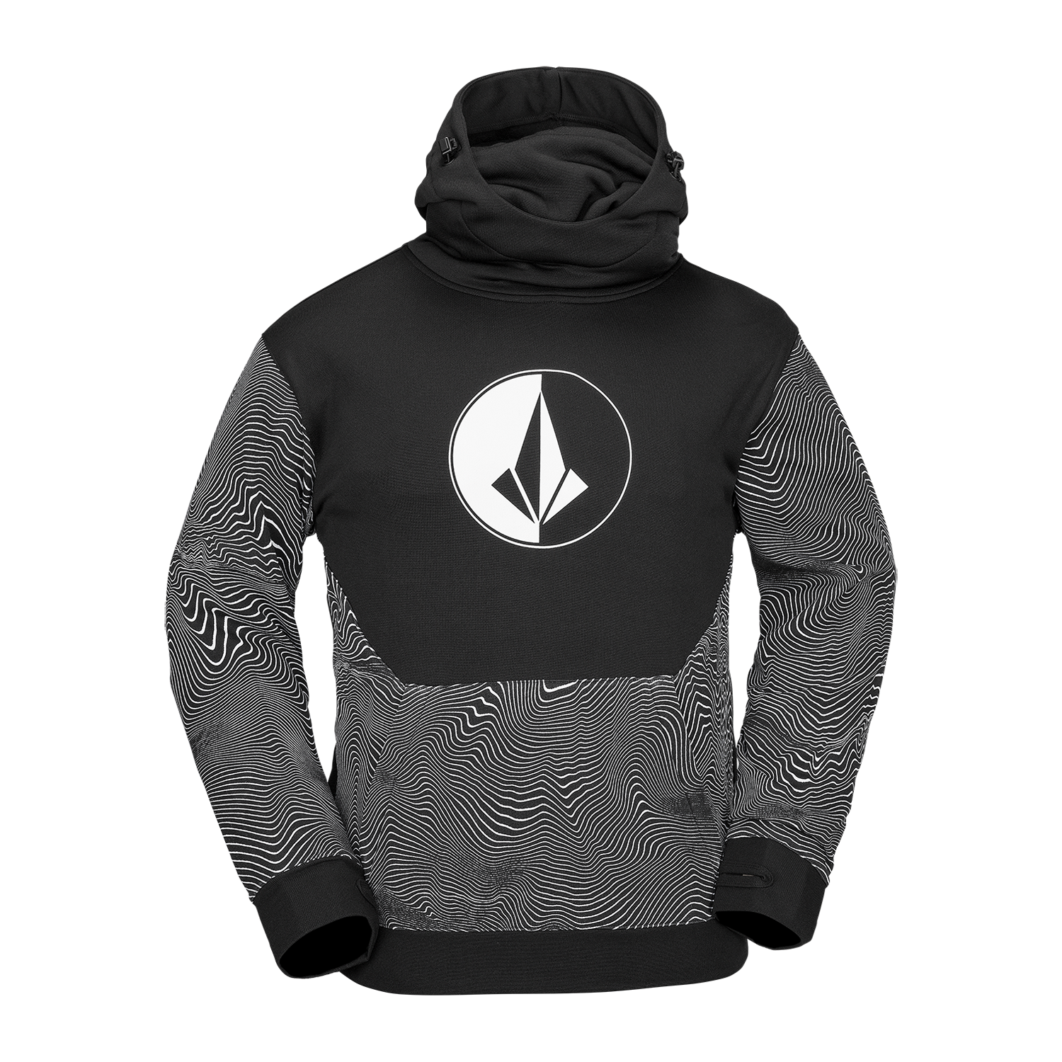 The Volcom Hydro Riding Hoodie is a technical and stylish sweatshirt designed for the slopes and beyond. Crafted from a 290g hydrophobic fleece, it offers both warmth and excellent water-repellency to keep you dry.
